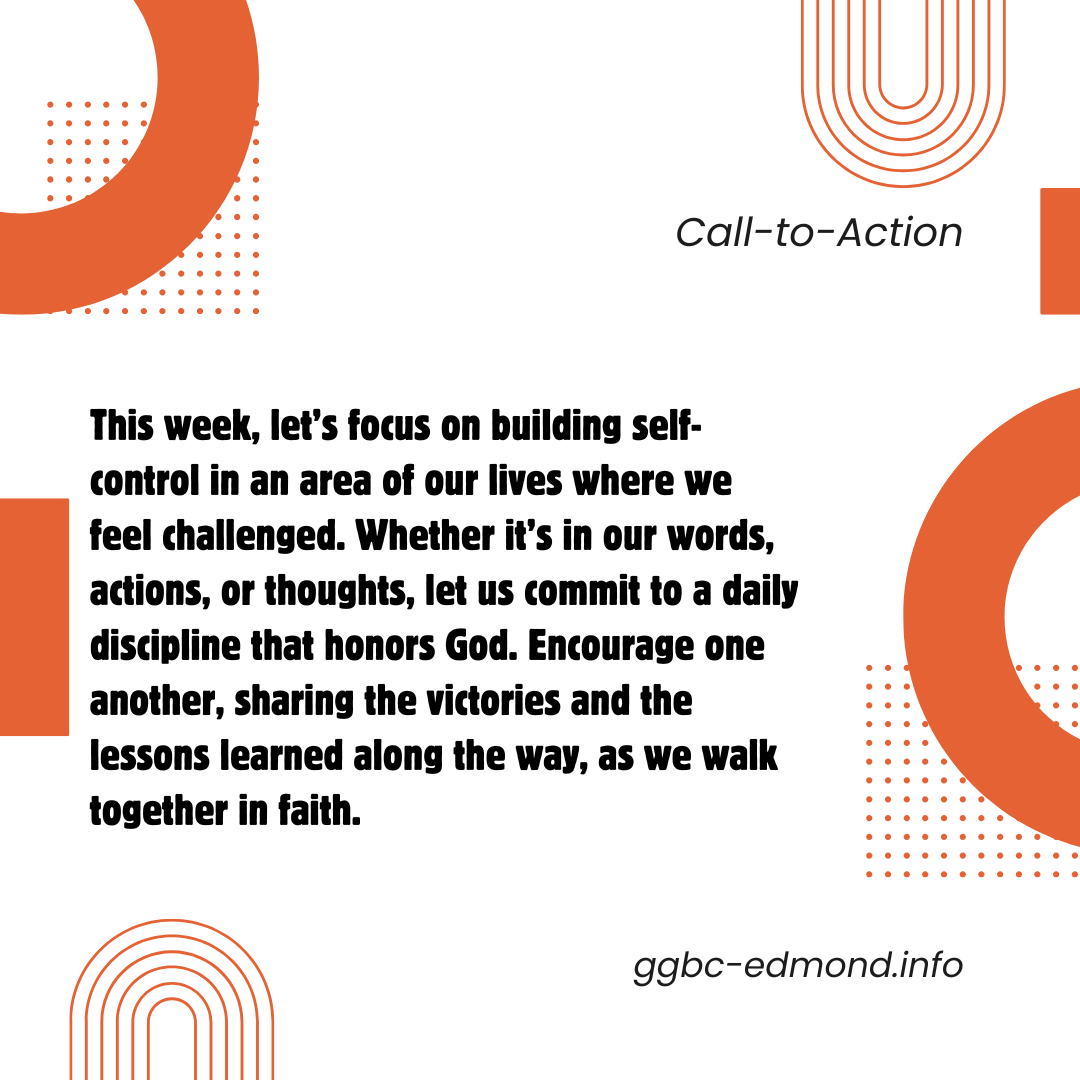 Let us strengthen our faith through daily prayer, Scripture reading, and reflection on God’s promises. As we build our faith, we grow in the strength needed to practice self-control, empowered by the knowledge that God is working in us.